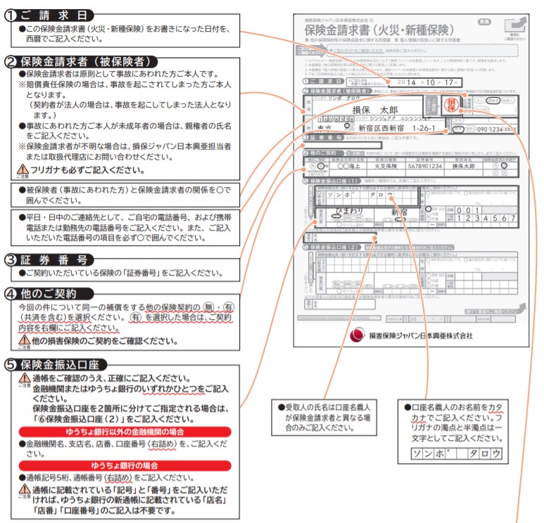 後ほど詳しく説明しますが、保険金の請求書などを自分で記入して保険会社へ郵送します。