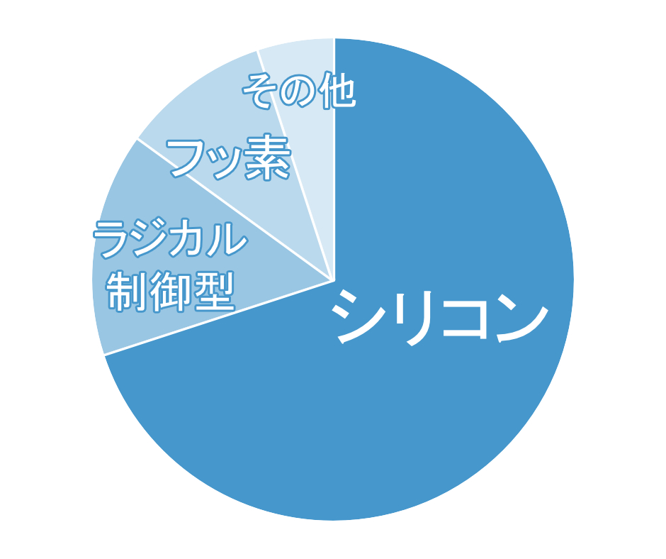 現在はシリコン塗料が圧倒的な人気ですが、最近はラジカル制御型やフッ素といった新しい種類がシェアを伸ばしています。