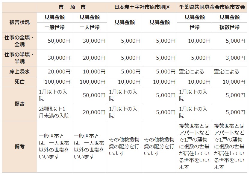 市原市における被災者相談窓口や災害見舞金の情報をまとめてみました。
