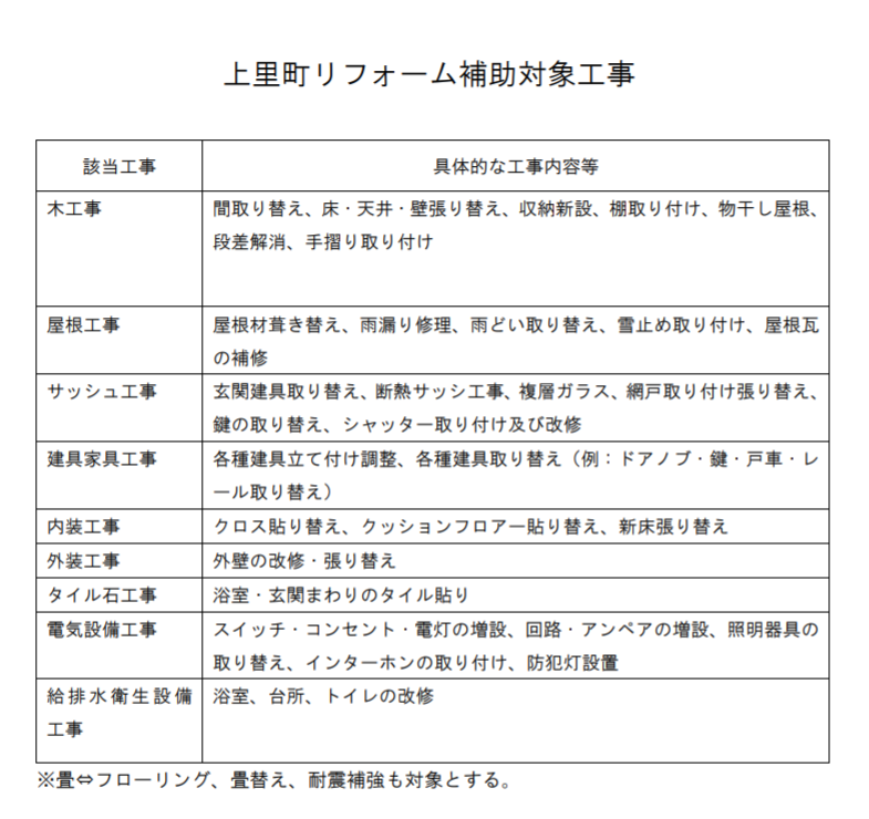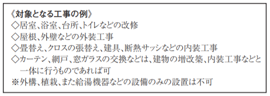 この補助制度で対象となるリフォームは、