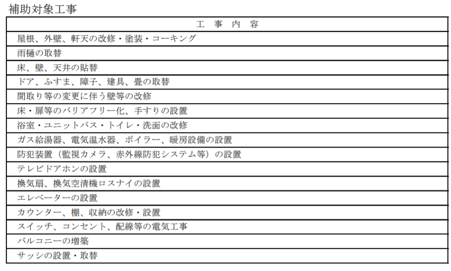 内外装の改修に加えて、浴室やトイレなどの改修も対象となっています。