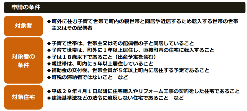 毛呂山町では、町内に住む親と同居・近居する子育て世帯を対象にリフォーム補助金を設けています。